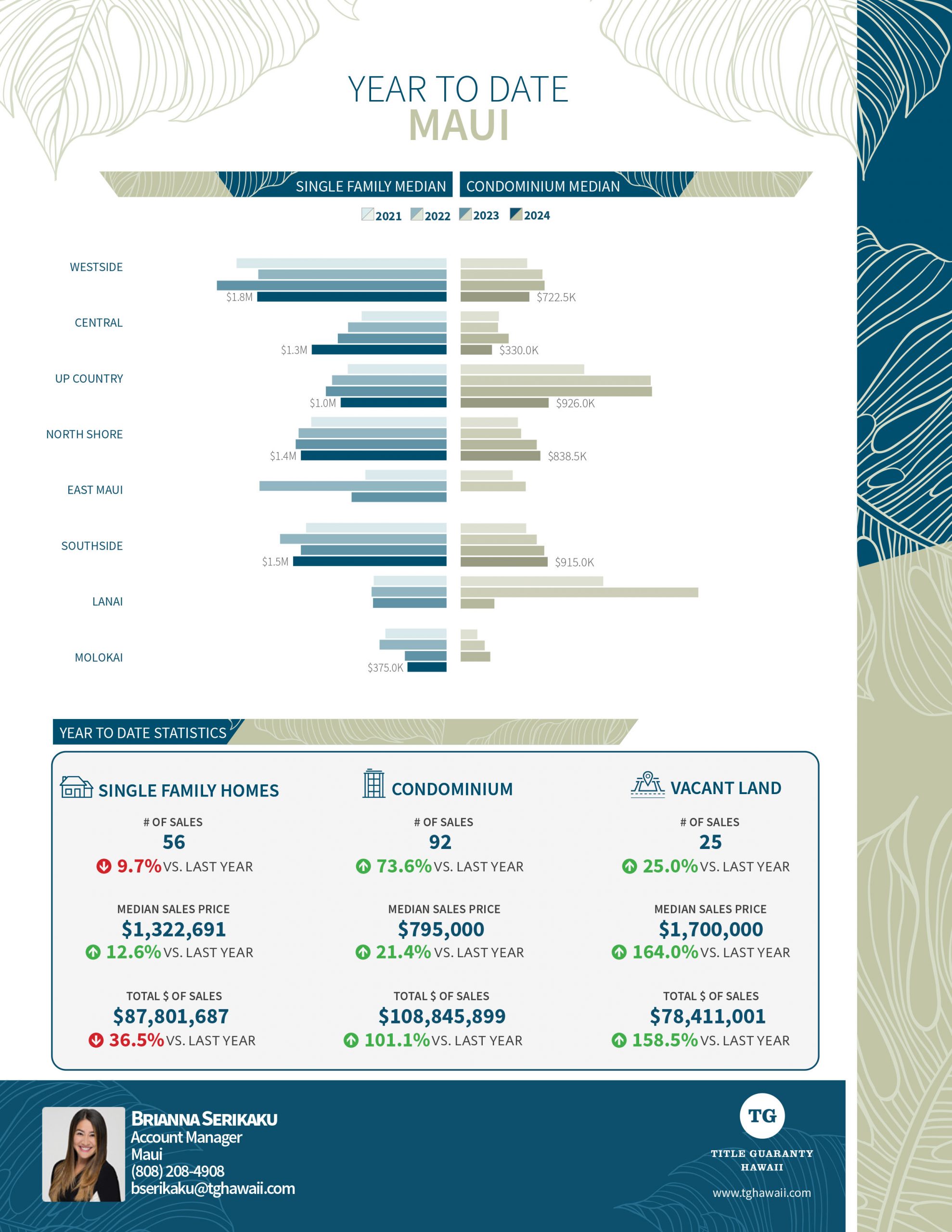 Residential Sales Report – Maui Island – January 2024 By Melody Oki|2024-02-06T07:39:17-10:00February 6th, 2024|Uncategorized|Comments Off on Residential Sales Report – Maui Island – January 2024 Share This Story, Choose Your Platform! FacebookXRedditLinkedInPinterestEmail About the Author: Melody Oki Related Posts